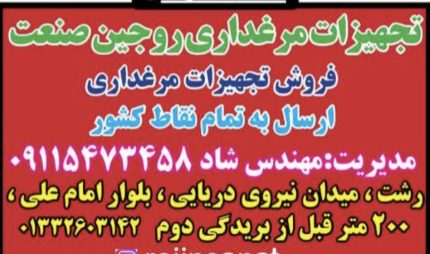 روجین صنعت پخش کننده و ارائه دهنده تجهیزات مرغداری و کلیه خدمات نصب در رشت و ارسال به سراسر کشور